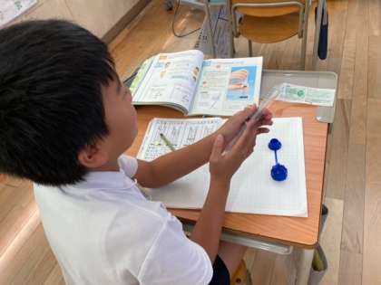 閉じ込めた空気をおすとどうなるかを調べる実験でした。