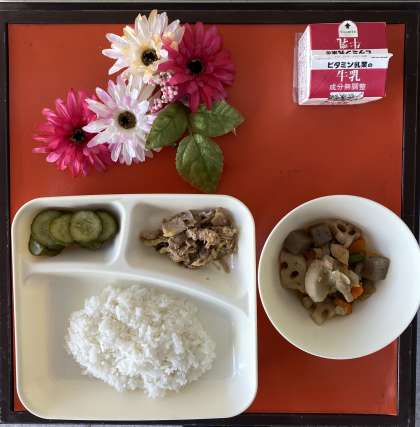 「煮物おいしい!」「カミカミ給食やねー。」「おかわりー。」と食缶は空っぽでした。