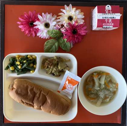 給食当番の児童も「はーい、いただきます!」と元気よく返事を返していました。今日もおいしくいただきました。「ごちそうさまでした。」😊