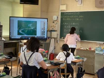 「流れる水のはたらき」の学習を映像を見ながら、行いました。