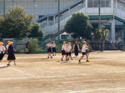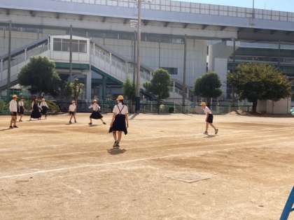 とても気持ちの良い天気です。6年生児童と先生が、ドッジボールをしていました。