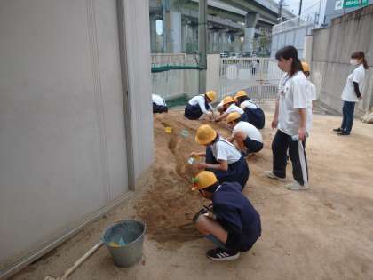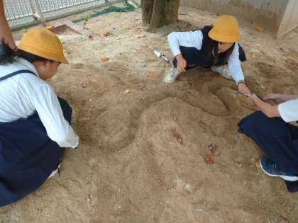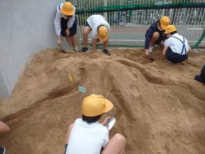 今日は、水の流れのはたらきの学習で、川を作りました。