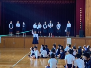 今日の集会は、◯Xクイズでした。「キリンの睡眠時間は1時間である」など、難しい問題がたくさんありました。答えはX。「キリンの睡眠時間は約20分」でした。