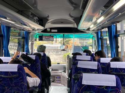 見学の後、バスに乗りました。今から学校に向かい出発します。