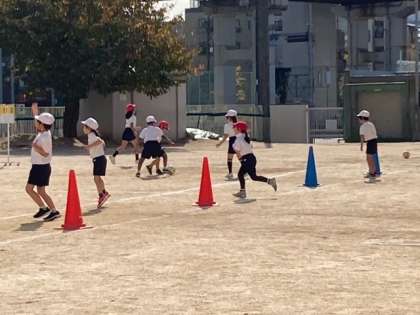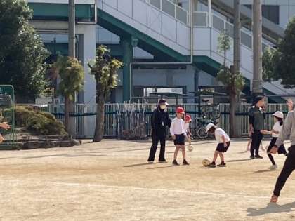 月曜日と違い、昨日と今日は、気温が随分上がりました。気持ちよく運動場で「ボールけり遊び」をしました。