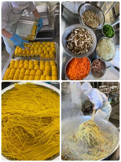 今日のウインナーときのこの和風スパゲッティには、しいたけ、しめじが使われしょうゆベースの和風味で、とてもおいしいと子どもたちに人気の献立です。