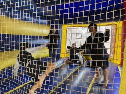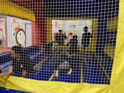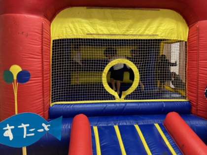昼休みに九条幼稚園のプレイルームにある「エアー遊具」で遊ばせてもらいました。