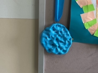 自分の顔とペンダントを掲示しています。懇談会の時に見てください。