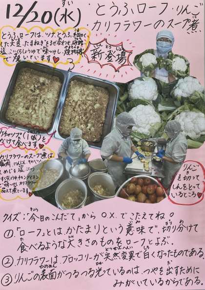 初めての献立ですが、子どもたちの反応は、「おいしい!」、教職員は、「ヘルシー!」とのことでした。