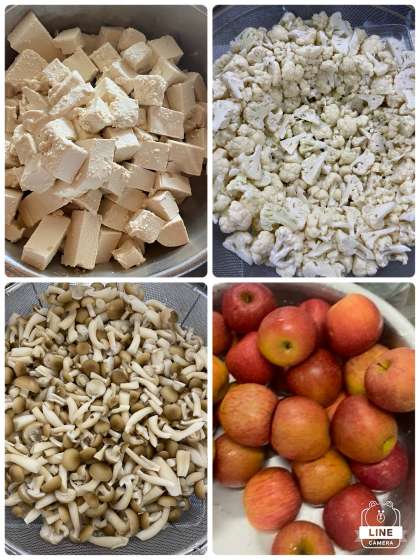 調理法は、ツナ、たまねぎ、砂糖、塩、こくちしょうゆ合わせ、練るようによく混ぜ、さらに豆腐、大豆(粒状)を加えて混ぜ、ミニバットに入れ焼き物機で焼いています。
