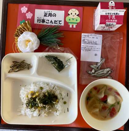 今日は、正月の行事献立です。正月には新しい年の始まりを祝い「今年も健康に過ごせますように」と願って食べる料理がたくさんあります。