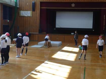 今日は、とび箱をしました。自分に合う高さで挑戦しました。