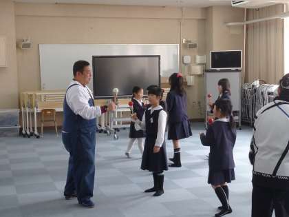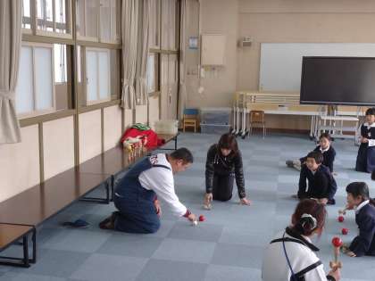 今日は、けん玉名人の方に来て頂き、色々な技やゲームを教えてもらいました。