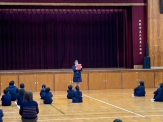 2月3日は節分でした。1年間、健康に過ごせるように願いを込めて悪いものを追い出すという日本の伝統的な行事です。その通り、子ども達には、健康に過ごしてほしいです。さて、今日の集会では、健康週間の話、そして、図書委員の児童から本の紹介がありました。