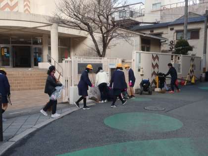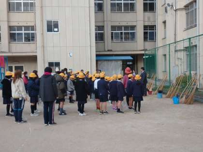今日は、PTAの方々と一緒に、学校内や周り、九条東公園のゴミや落ち葉を拾ったり竹ぼうきで掃いたりして、みんなで協力しながらきれいにしました。
