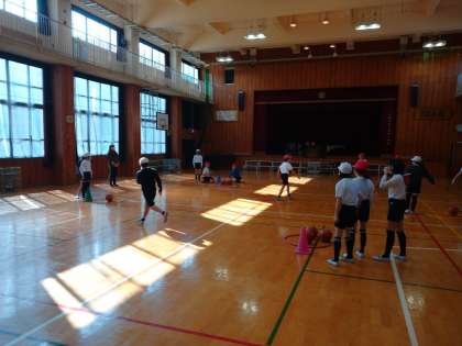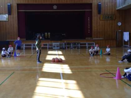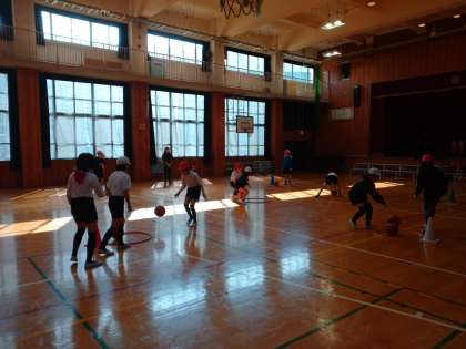 今日は、バスケットボールを使ってドリブルしたり競走したりして、体を動かしました。