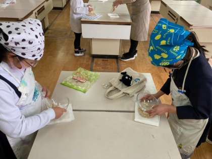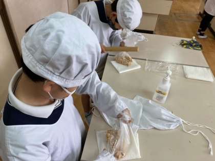 栄養教諭の筒井先生と一緒に「みそ」作りに挑戦しています。