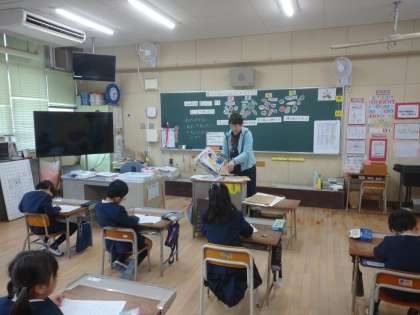 筒井先生と一緒に食べ物の栄養について学習しました。