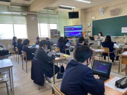 パソコンを使ってクイズをしました。また、4時間目は、外に出て遊びました。