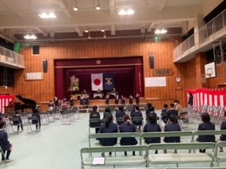 修了式の後、1、2年生が、4月5日の入学式で披露する歌と合奏をみんなに見てもらいまいました。