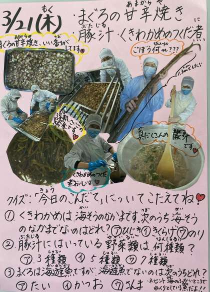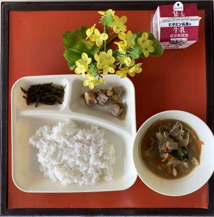 今日は、3学期最後の給食でした。どのクラスも楽しそうにおいしく食べていました。