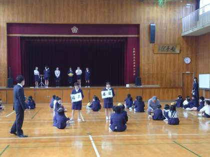 今日は、新しいたてわり班で、自己紹介をしました。