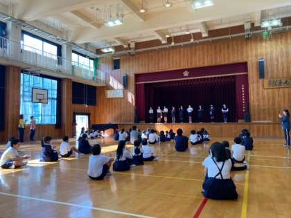 今日の集会では、運営委員会と各委員会の代表の紹介を行いました。一言ずつ挨拶を行いましたが、とても頼もしく感じました。