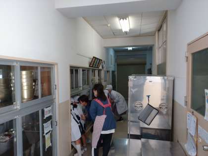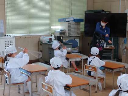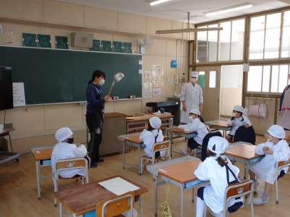 今日は、栄養教諭の南浦先生から、給食の様子を教えてもらったり、観察したりしました。