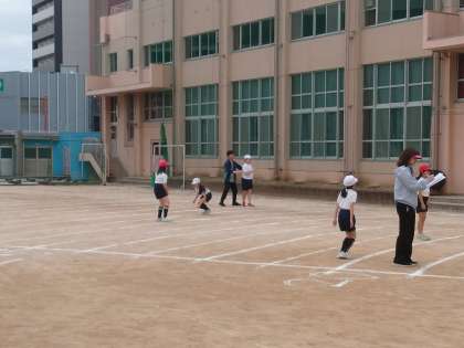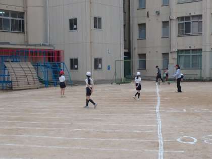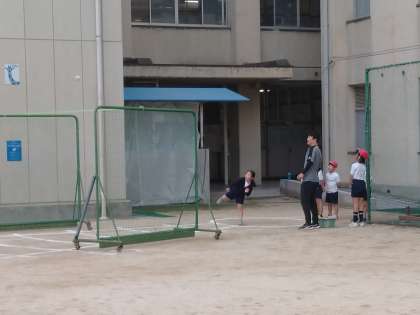 今日は、ソフトボール投げをしました。しっかり投げています。