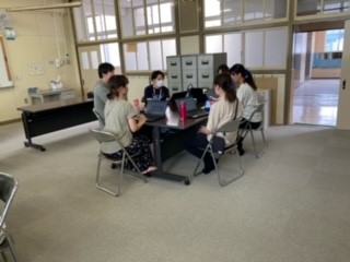 今年度の校内研究は、ICT機器を効果的に活用していくことをテーマにしています。放課後、第1回実践交流会を実施しました。今学期、各学年で取り組んだICT機器の効果的な活用について、紹介し合いました。