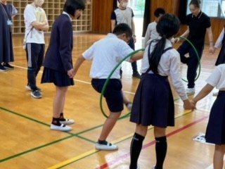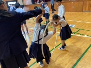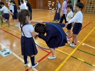 今日の集会は「フラフープリレー」でした。とても盛り上がっていました。