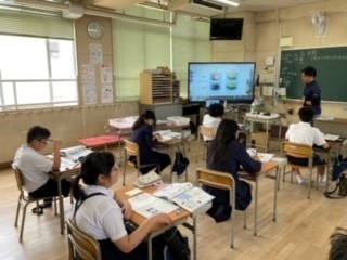 考察・まとめの時間では、子葉の中にあるでんぷんが発芽や成長のために使われるのではないかという考えを活発に交流していました。
