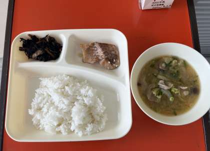 きょうの献立は、ごはん、あかうおのしょうゆだれかけ、豚汁、ひじきのいため煮、牛乳でした。