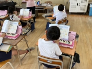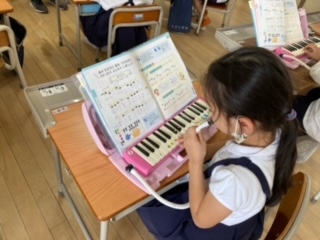 鍵盤ハーモニカの練習をしました。