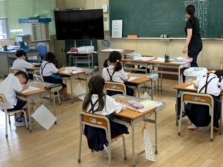 黒板の字をしっかり見て、連絡帳を書いていました。
