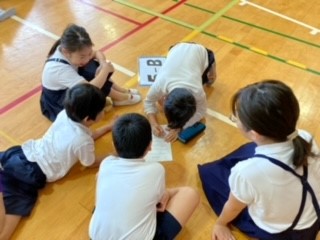 朝の集会で、「学年クイズ」をしました。各学年の先生の好きな色や物などをあてるクイズでした。なかなか難しかったようです。