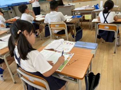 文書をしっかり読み、意味を理解しながら問題に取り組んでいます。今日は、ひき算の問題でした。