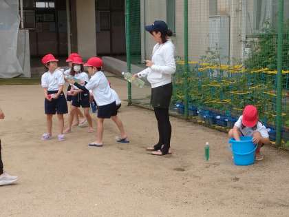 今日は、水でっぽうで水を遠くへとばす活動をしました。