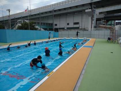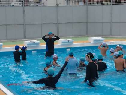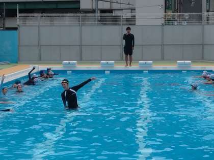 今日は、インストラクターの方に来て頂いて、クロールの泳ぎ方を教えて頂きました。