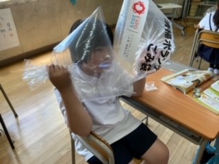 「とじこめた空気のせいしつ」の学習をしています。ビニル袋を押すとどうなるかな?