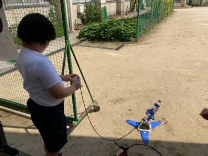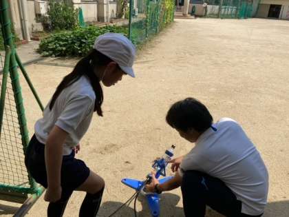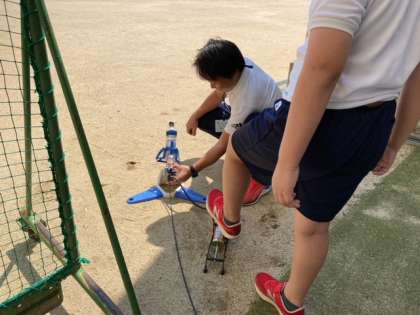 理科の学習のまとめで、「ペットボトルロケット」を飛ばしました。