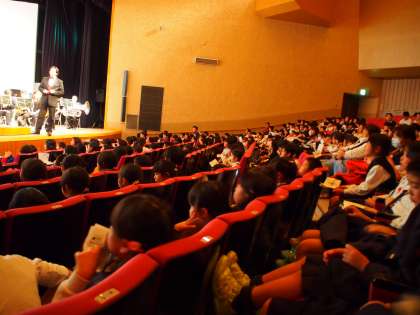子ども文化センターで音楽鑑賞会を行いました。オオサカ・シオン・ウインド・オーケストラによるディズニーアニメの音楽などの迫力ある生演奏を全校児童で楽しみました。学習発表会で5,6年生が「セロ弾きのゴーシュ」の劇をしていたので、本物の楽団の演奏をみんな興味深く鑑賞していました。
