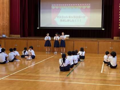 集会の最後に、児童会の代表児童から、創立150周年記念マスコットキャラクターの決定のお知らせがありました。名前は「ひがめっ子」です。みんなで150周年を盛り上げていきましょう、という児童の言葉がありました。