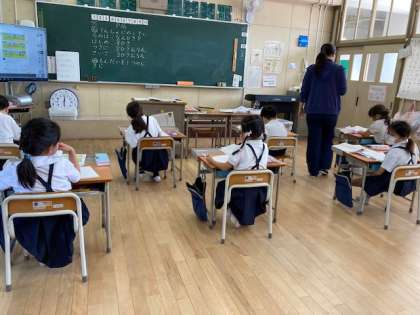 今日の学校公開では、1年生の授業の様子を少し見ていただきました。