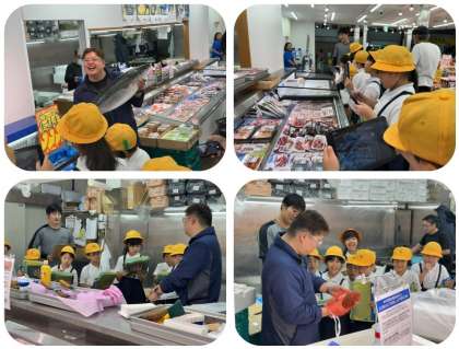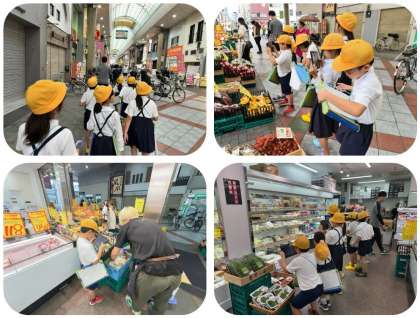 今日は3年生が社会見学でナインモール九条商店街の「八百鮮」に行きました。店内に入ると商品の種類や並び方、値段、働く人の姿など、メモを取りながらじっくり見学しました。次に、店員さんへのインタビューです。働いていて大変なこと、お客さんの数、商品の並べ方の工夫、売るための工夫、使っている道具、仕入れの方法、お客さんとのコミュニケーションなど、みんなが知りたいと思ったこと、気になったことに1つ1つ丁寧に答えてくださいました。他にも、体より大きなお魚やスッポンを見せてもらうことができ、子ども達は嬉しそうにしていました。普段、見聞きすることのないお店の裏側の工夫を知ることができ、とても学びのある1日となりました。「八百鮮」の皆様、ありがとうございました。