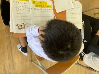 2年生は、先週、図書館の見学に行きました。今日は、図書館で見たり聞いたりしたことを「見つけたよ!図書館のひみつ」として、まとめました。