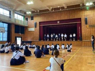 今日の集会は、図書委員会による図書クイズでした。たくさんの問題を考えてくれていました。