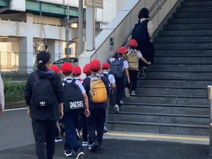 今日は、全校児童で服部緑地へたてわり遠足に行きます。予定通り出発しました。