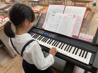 リズムにのって演奏しています。