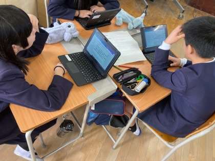 「プレゼンテーションをしよう」に取り組みました。今日のめあては、伝えたいことが明確になるように工夫しようでした。さすが6年生です。タブレットの扱いにとても慣れています。
